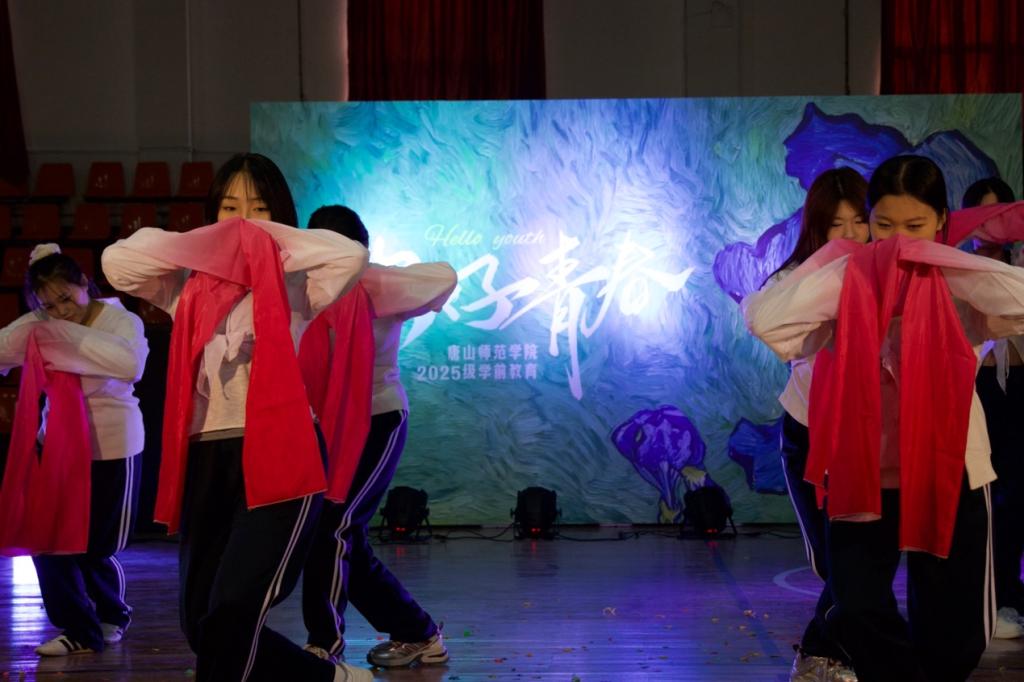 作为整场晚会的重头戏,2025级学前教育三个班级依次登场,分别献上《遇见青春》《勇气进行时》《青春·跃动轨迹》三部集体舞作。同学们以整齐的动作、饱满的状态,在院领导、教师与全体同学面前自信展现班级风貌,彰显出强烈的集体荣誉感与团队凝聚力。