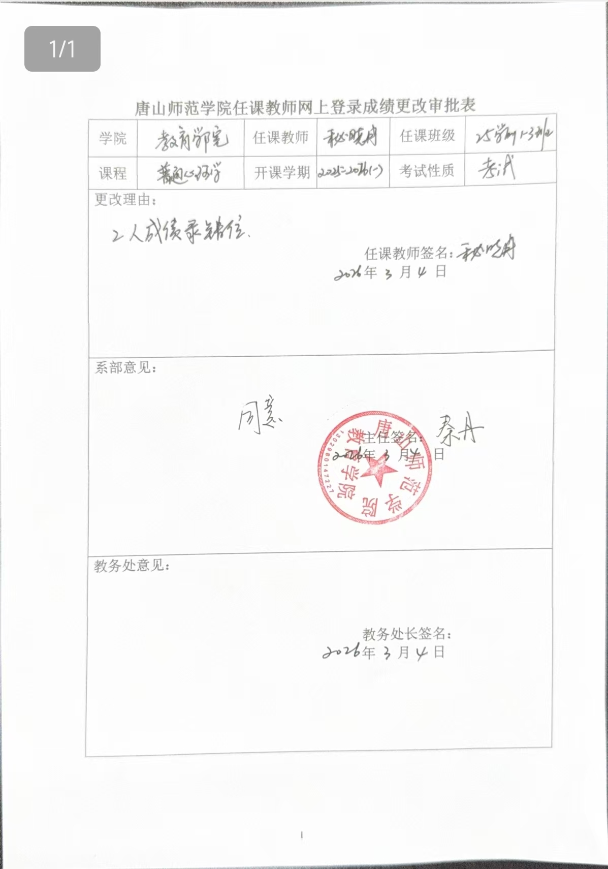 伟德国际1946源于英国任课教师网上登录成绩更改审批表
