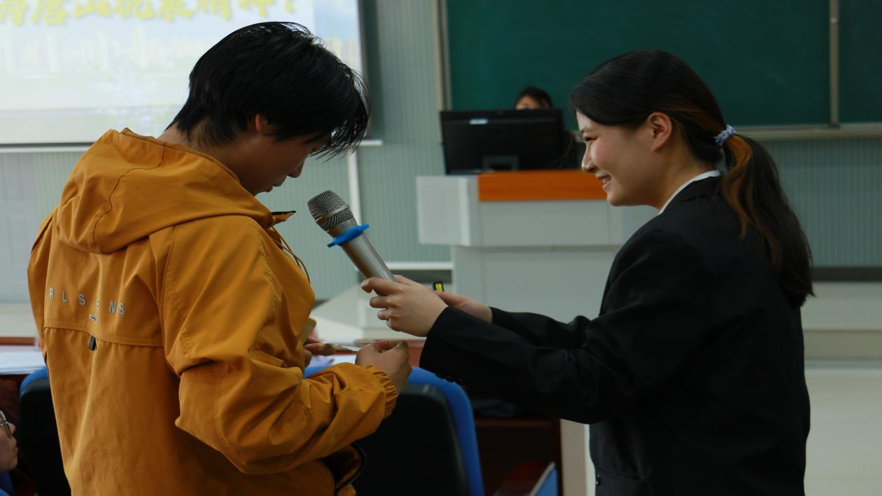 (张梦晗同学在微团课中与现场同学互动,生动传递抗震精神的时代内涵)