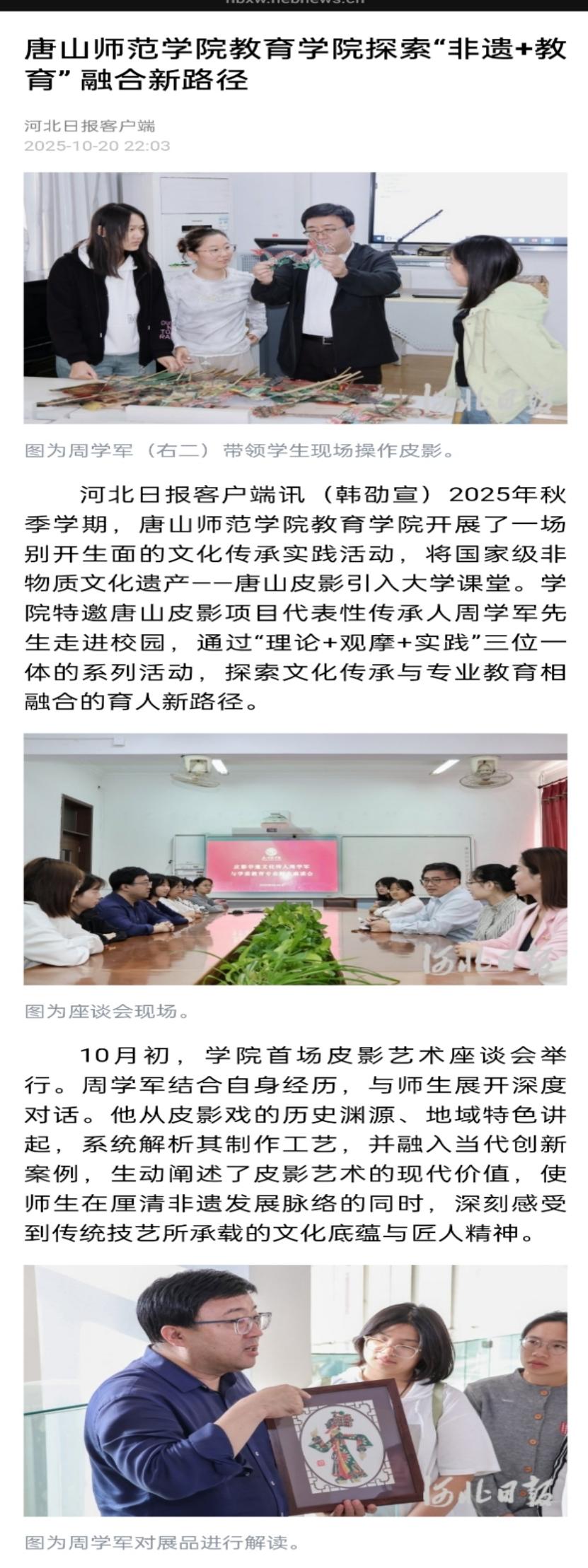 《河北日报》—1946伟德国际源自英国探索“非遗+教育” 融合新路径